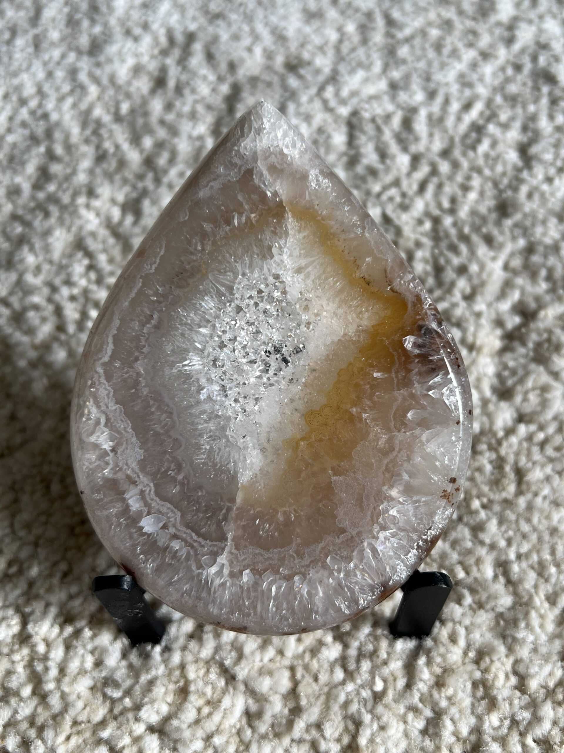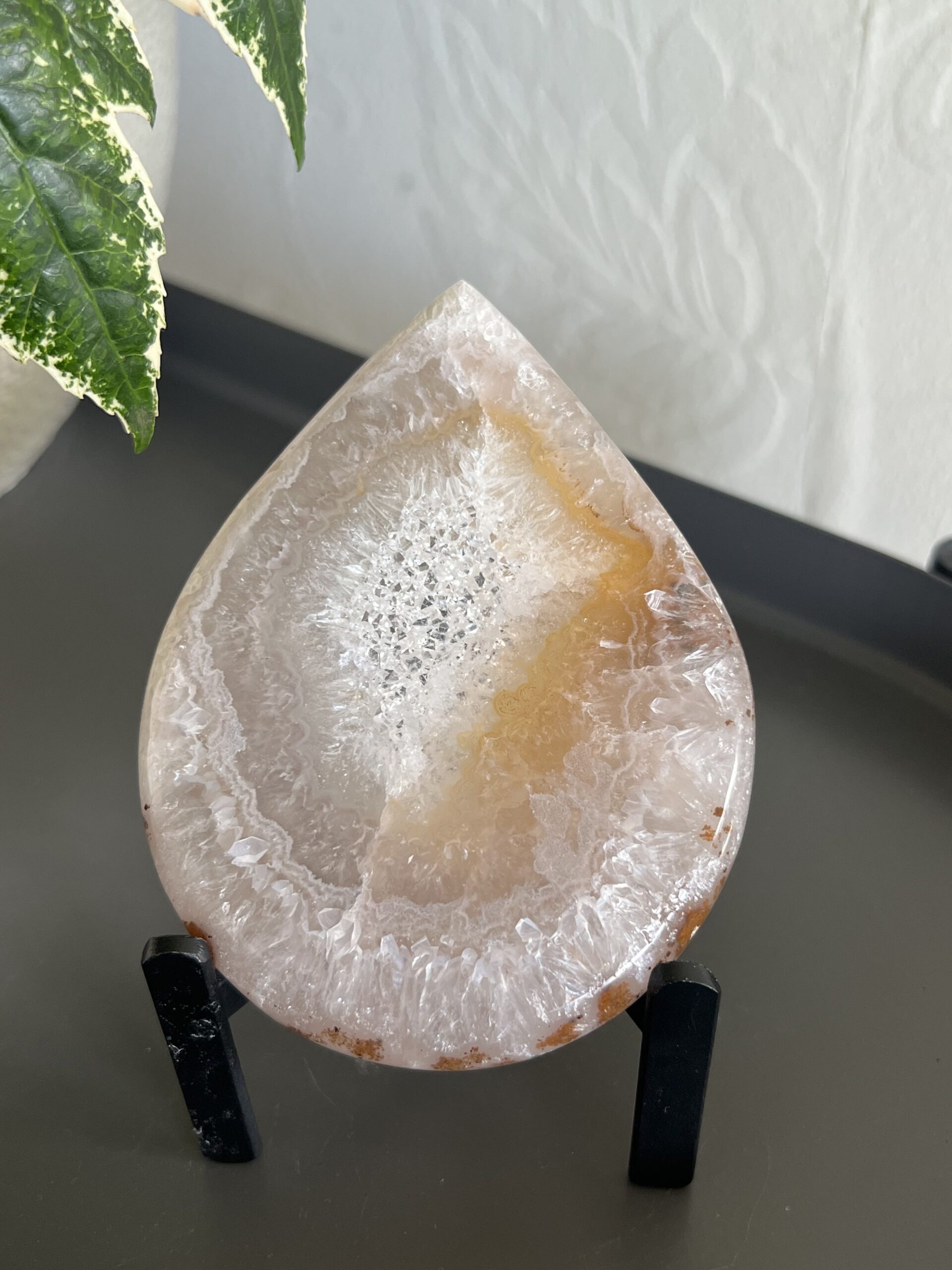 This stunning piece is 10,5 cm tall. She weighs 273 grams. Stand included.