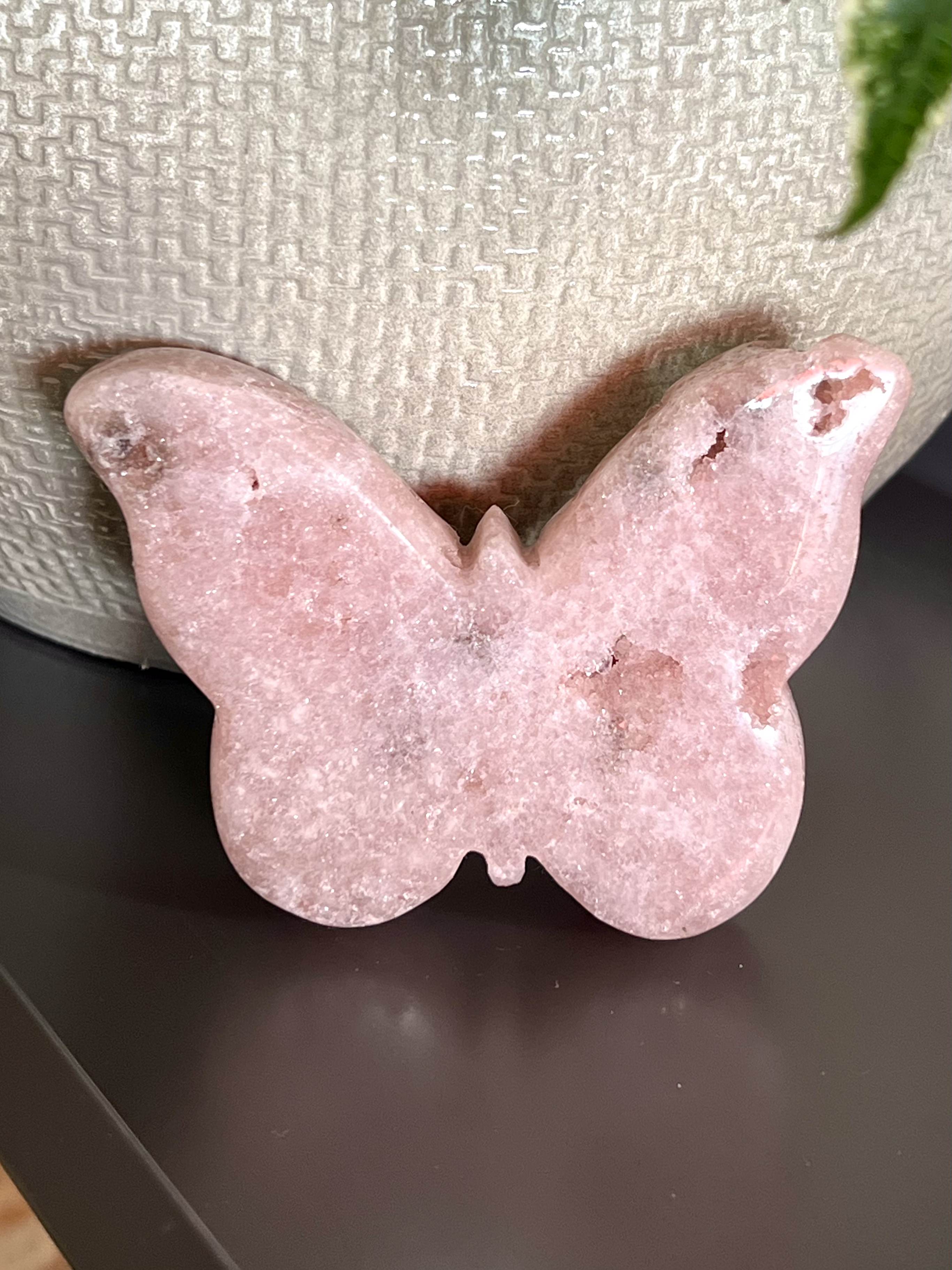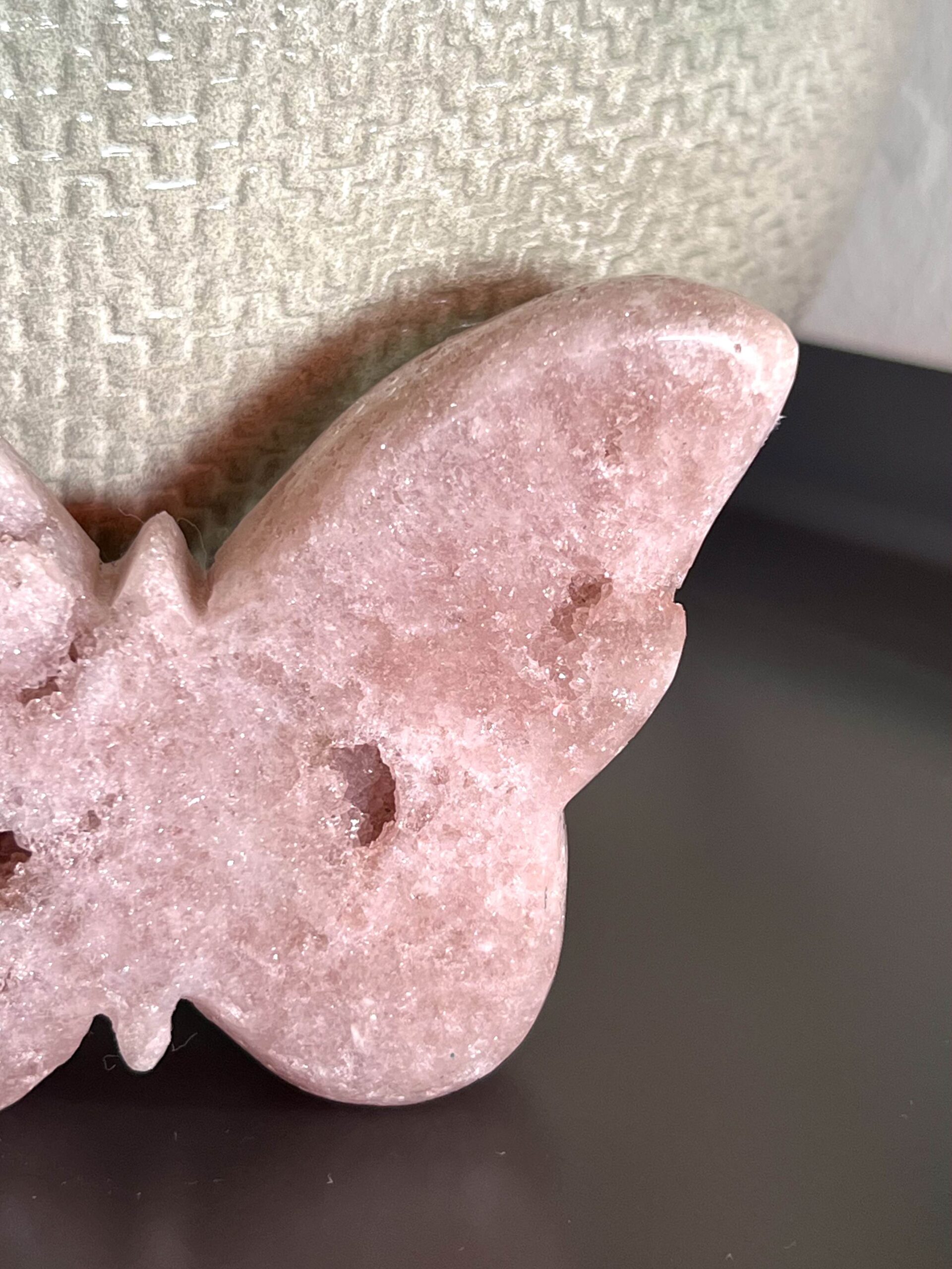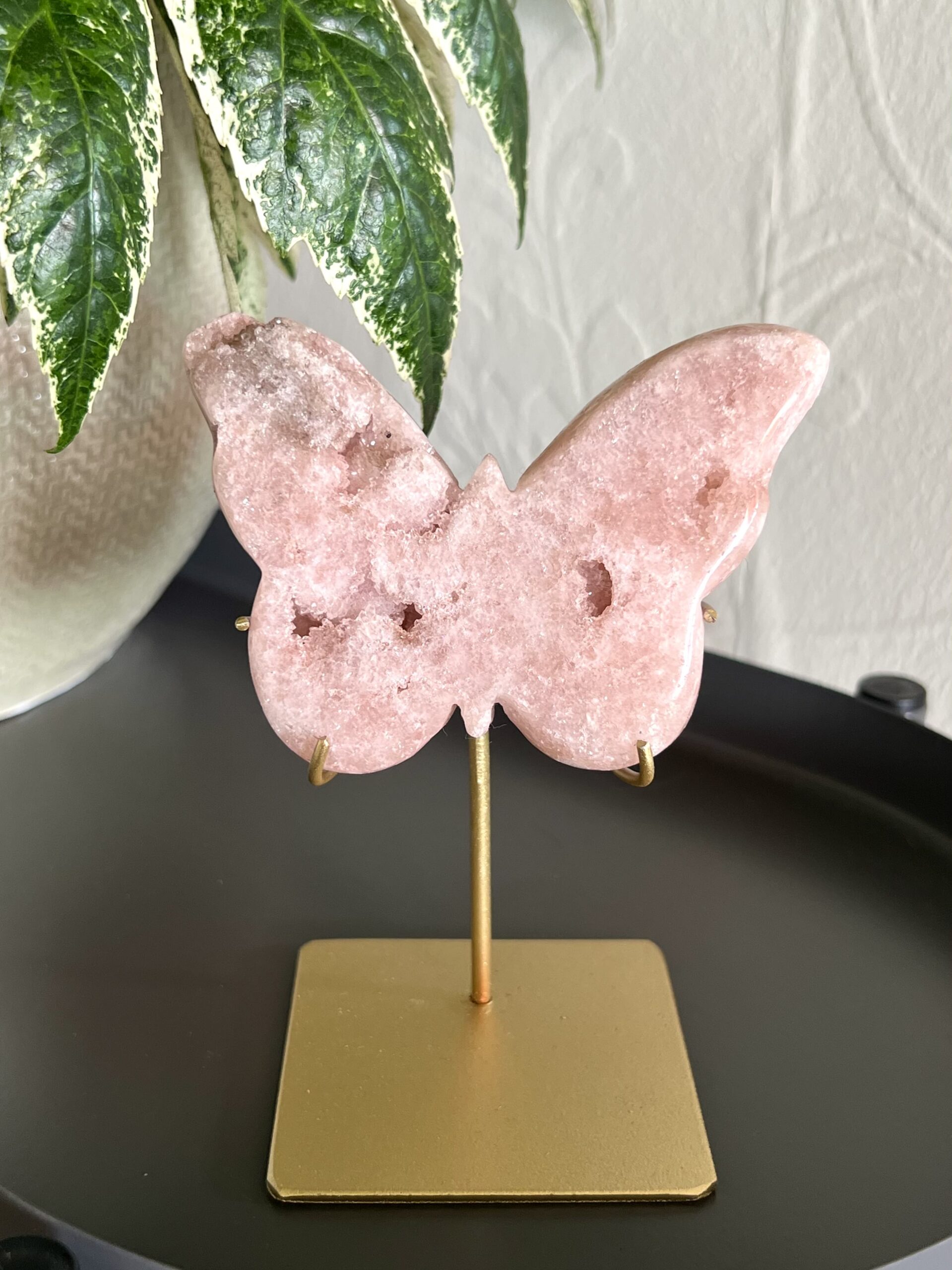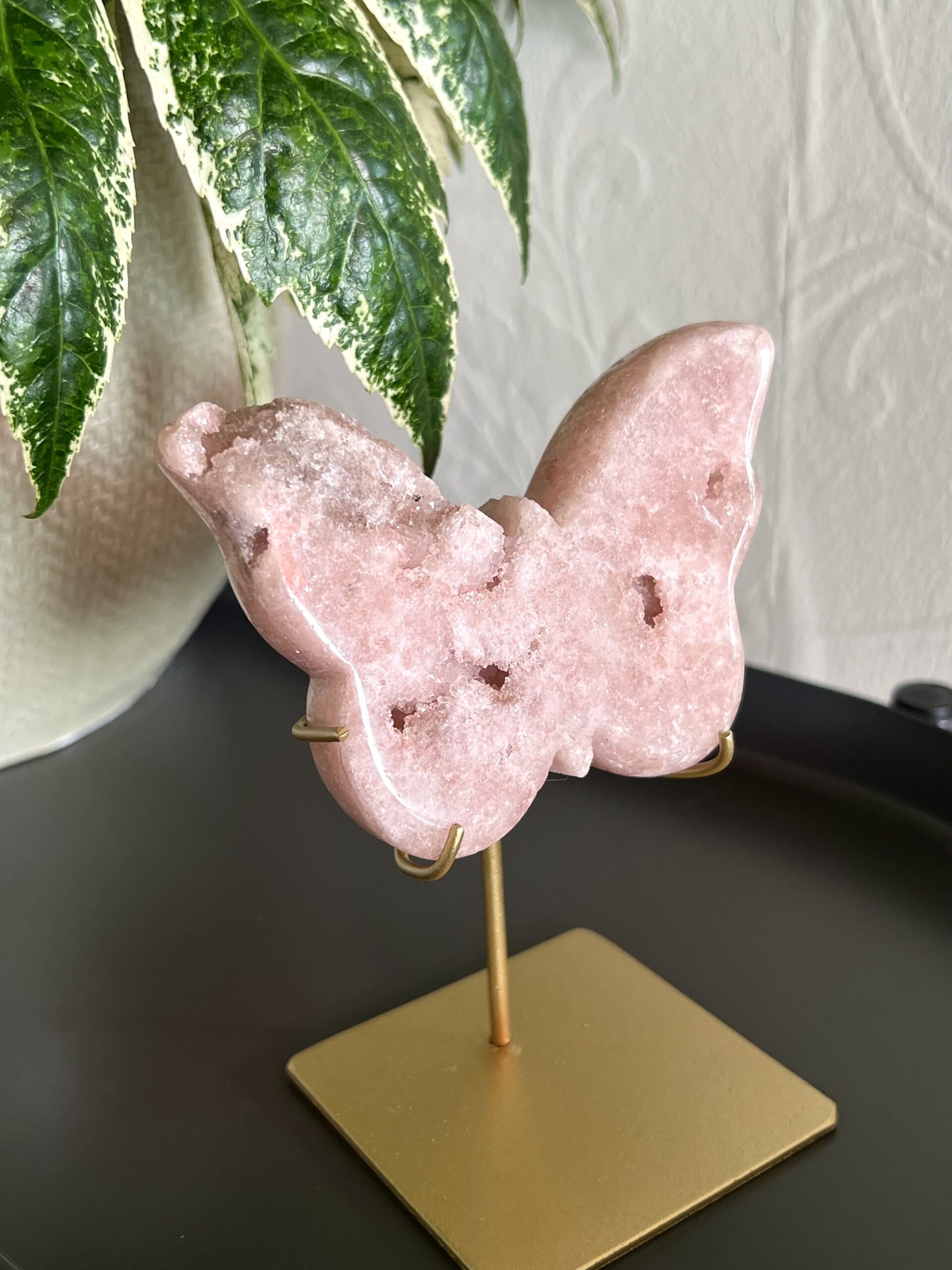 This gorgeous Pink Amethyst butterfly is of AAA quality and comes on a custom made stand. She can actually stand on her own, but please be mindful that she is a bit wobbly and prone to fall over, hence why I’m recommending using the stand.