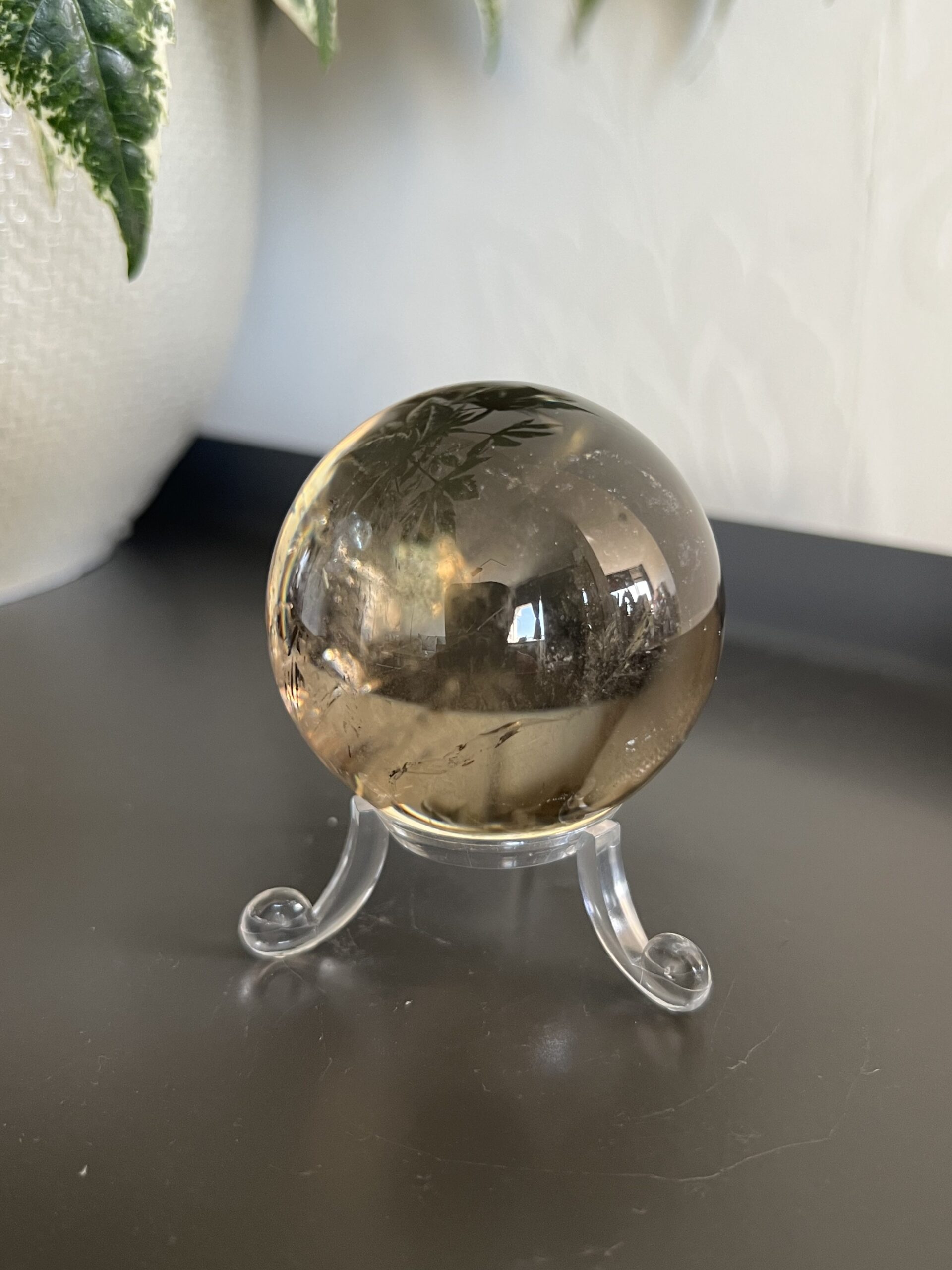 This piece is a stunning, lighter shade of AAA grade Smokey Quartz. She’s super clear and has a stunning rainbow!