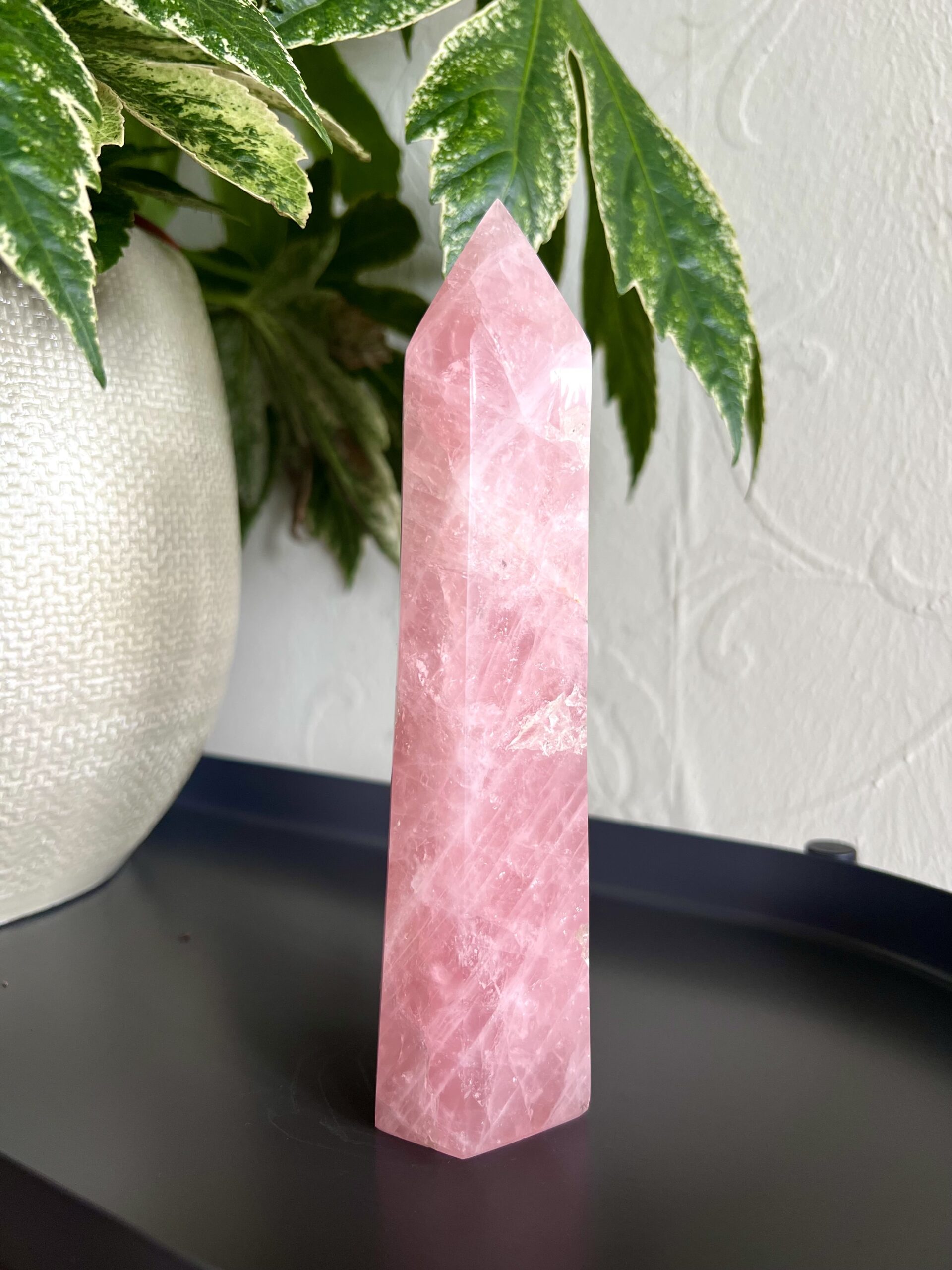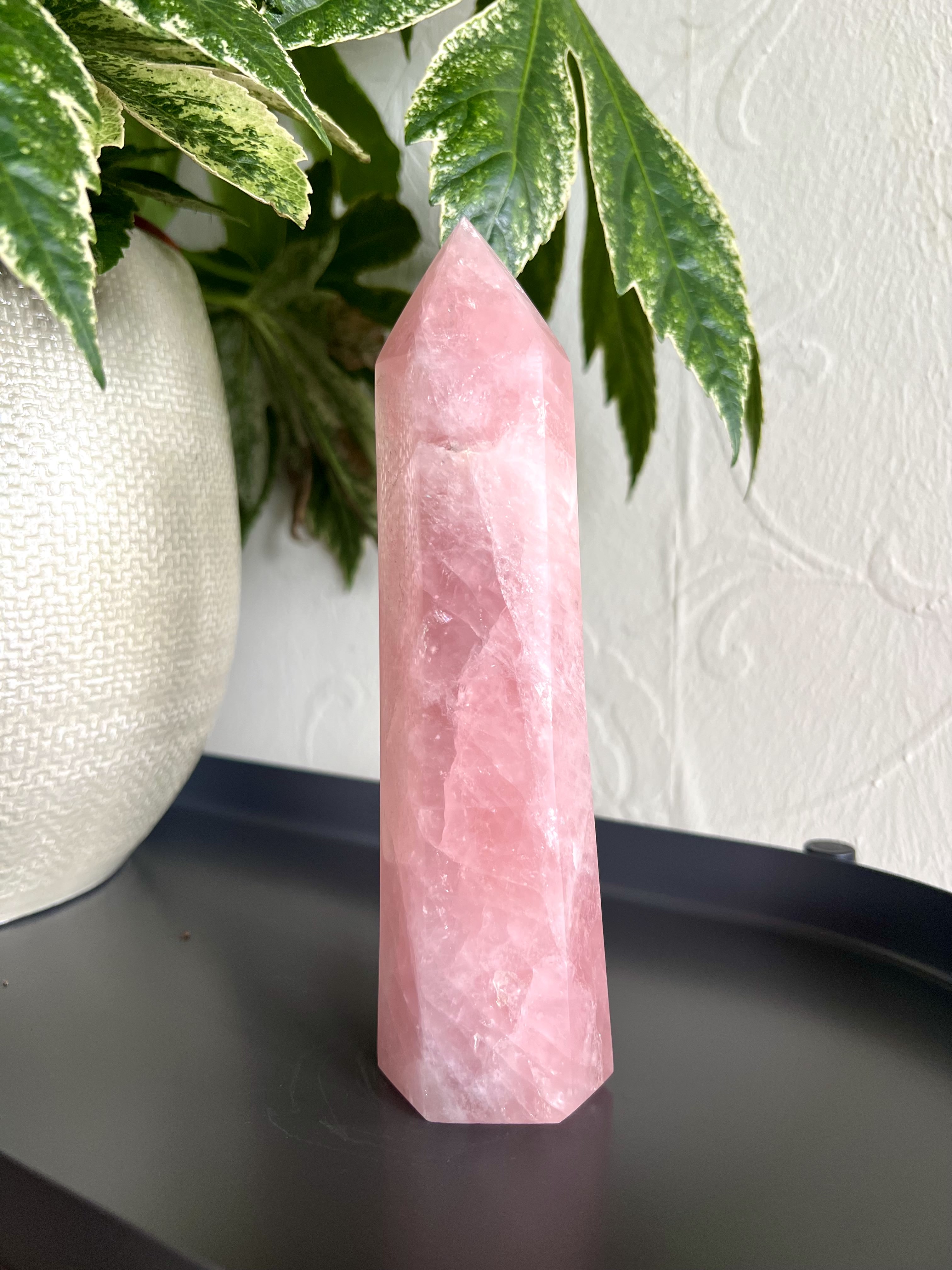 This gorgeous, big Rose Quartz tower weighs 668 grams and is 20 cm tall.